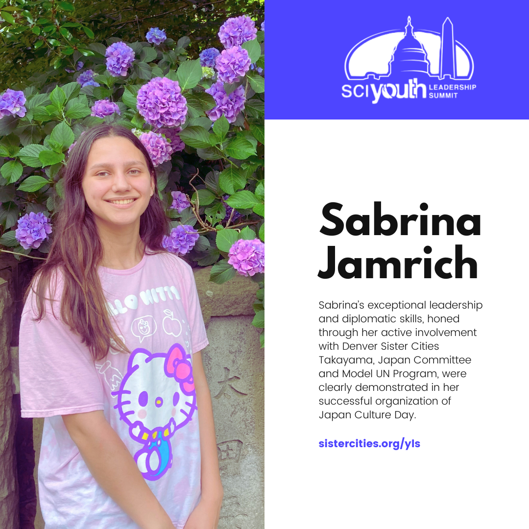 Sabrina Jamrich: Sabrina's journey to the summit was fueled by her passion for cultural exchange and diplomacy, which she has nurtured through her involvement with Denver Sister Cities International's Takayama, Japan Committee and the Model UN Program. During the summit, Sabrina's leadership skills shone as she engaged with international peers, shared insights on cultural nuances, and actively participated in discussions. Her dedication to ensuring the success of Japan Culture Day in Denver exemplifies her commitment to fostering global connections.