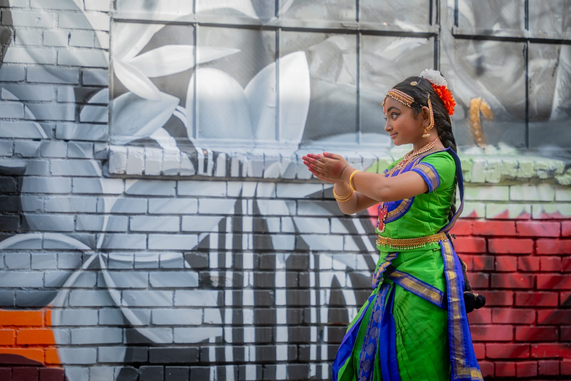 At the heart of this year’s Taste of India Festival was a unique collaboration between Chennai-based artist A-Kill and Denver’s own Koco Collab. Together, they crafted a stunning mural that encapsulates the rich cultural heritage of both cities. Located in The Alley next to Noble Riot, between Larimer and Walnut Streets, the mural features the Pookkari, a traditional flower seller from Chennai, surrounded by vibrant plumeria flowers and coastal motifs. Denver’s natural beauty is reflected in the incorporation of local trees and a moon, symbolizing the universal connection between these two sister cities.