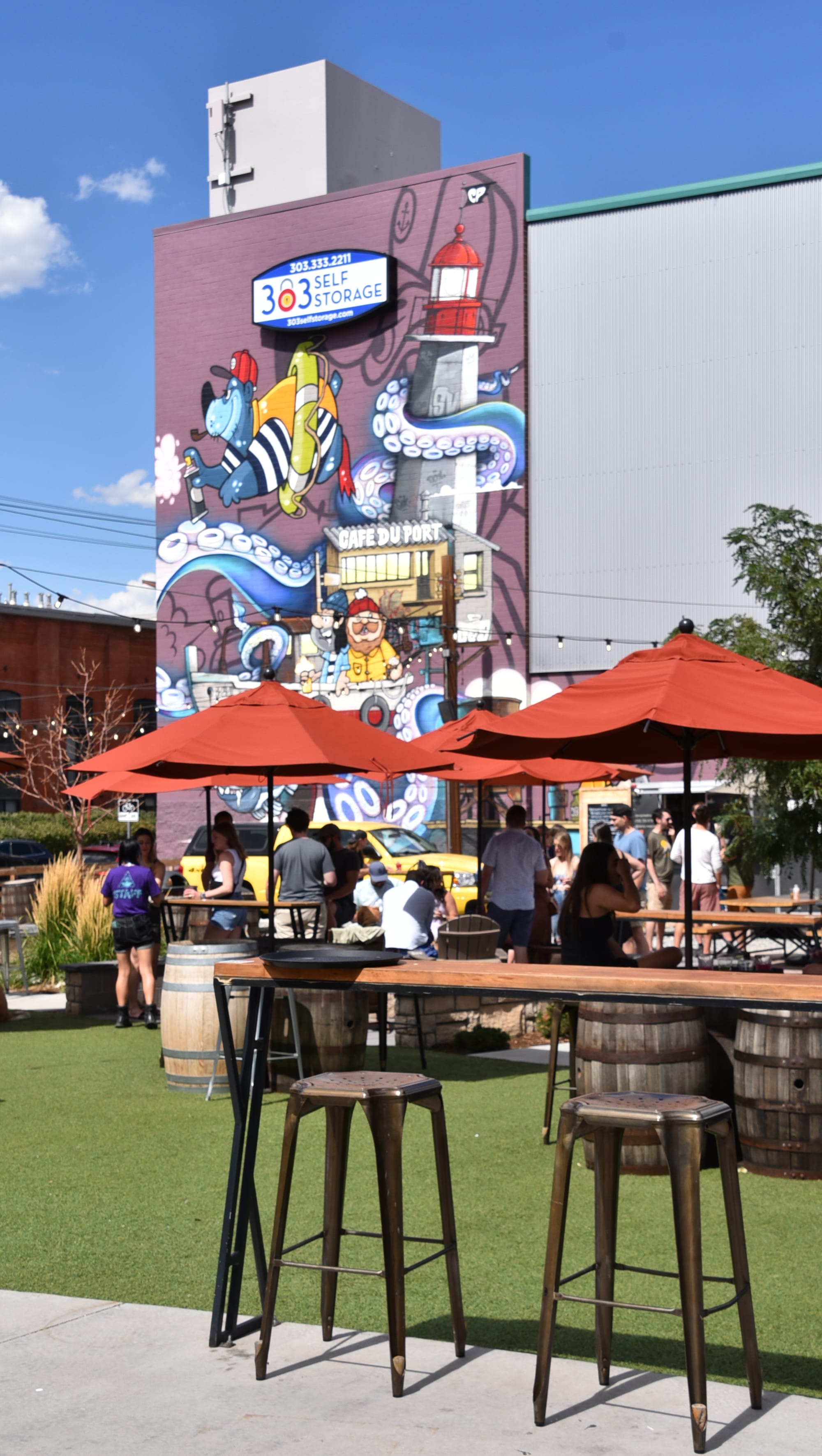 In April 2022, Brest muralists Gwendal Huet and Eddy Barclem collaborated with Denver artists Anna Charney and Mike Graves to produce a breathtaking mural in Denver’s RiNo Art District. This collaborative project adorned the walls of Improper City, a popular outdoor venue in Five Points. The mural’s dynamic fusion of styles—abstract patterns and character-based art—captured the cultural vibrancy of both cities.