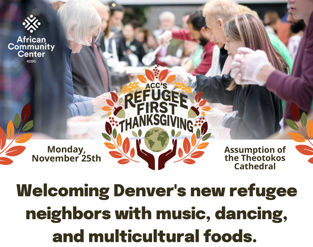 Every year, the ECDC African Community Center hosts an extraordinary event that welcomes Denver's newest refugee and immigrant community members by sharing an evening of food, friendship, and dancing. This year marks the 19th Annual Refugee First Thanksgiving, and we are thrilled the Denver Sister Cities Axum Committee is supporting a culinary highlight at the event.