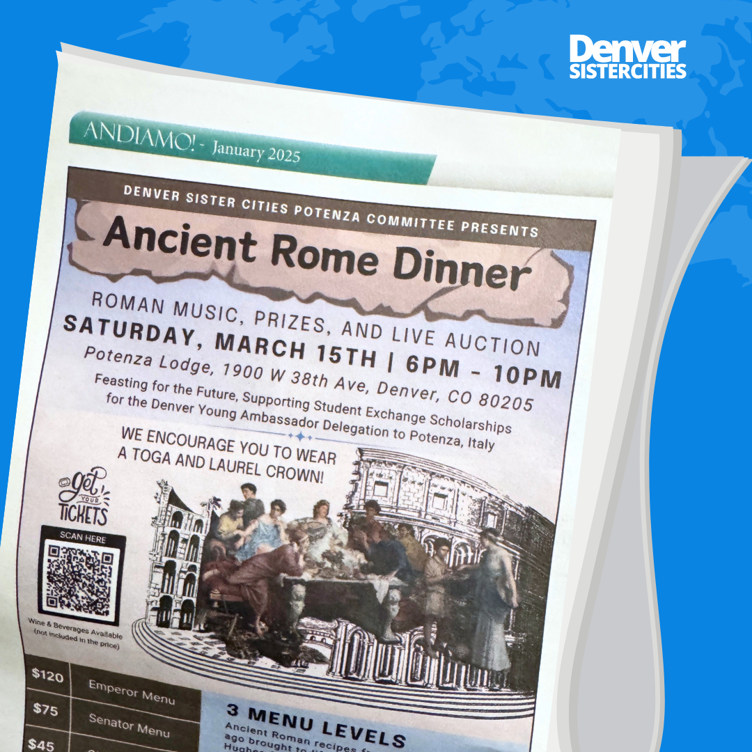 We’re thrilled to announce that the Denver Sister Cities Potenza Committee has been spotlighted in the latest issue of Andiamo! - Colorado’s Italian Community Newspaper! The feature article dives into the rich history and cultural ties between Denver and Potenza, Italy, showcasing how this sister city partnership has fostered lasting connections through cultural exchanges, culinary traditions, and community events. Pick up your copy at a numerous locations in Colorado.