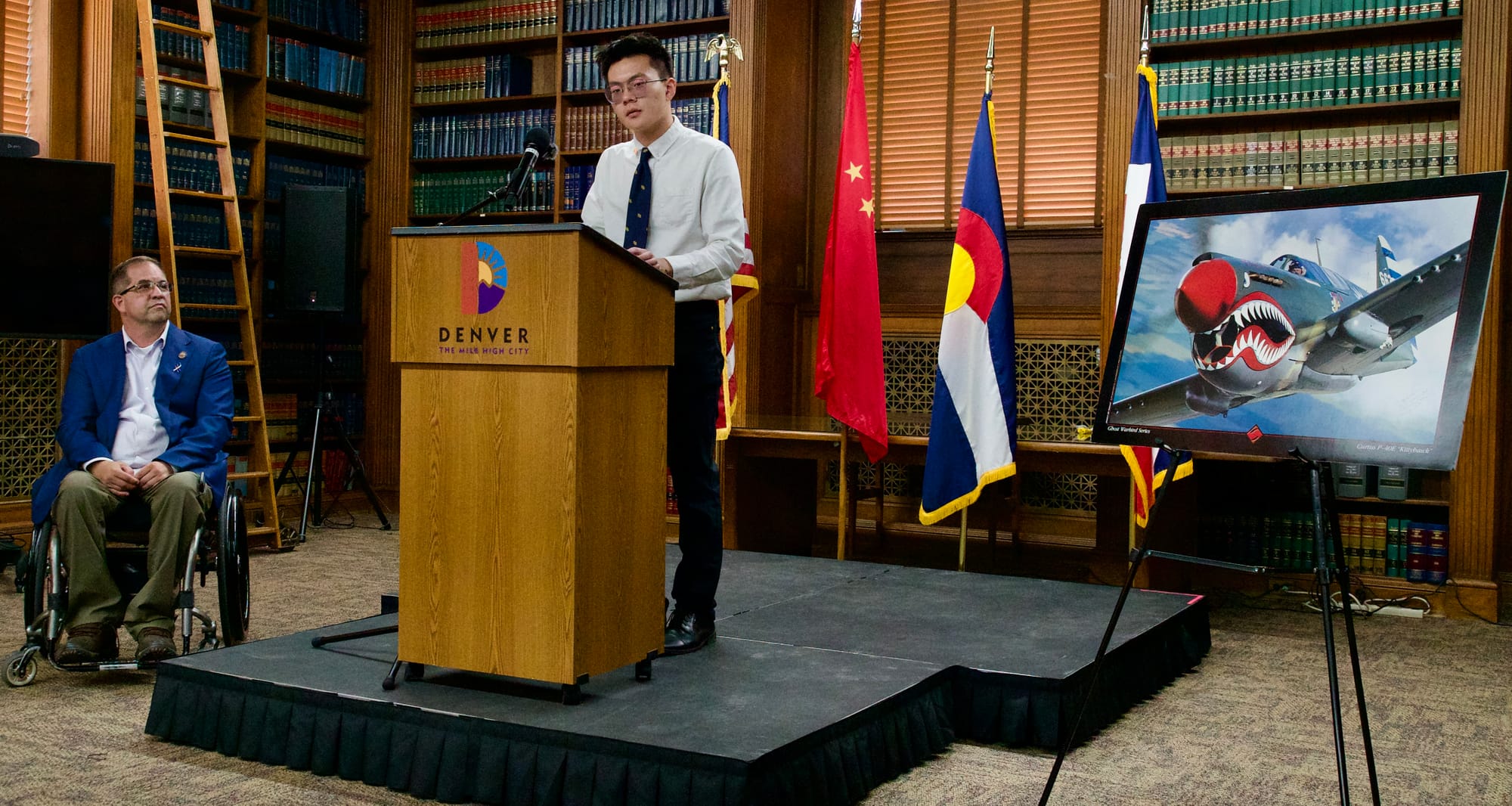 A special moment in the ceremony was the recognition of John H. Yee, a pivotal figure in establishing the Denver-Kunming Sister City relationship in 1986. John Yee’s service as a translator for the Flying Tigers during World War II and his lifelong dedication to strengthening ties between Denver and Kunming were honored. John Yee was posthumously awarded the People’s Republic of China Commemorative Medal, recognizing his outstanding contributions. His son, Rick Yee, was present at the ceremony to share this prestigious medal and s his father’s legacy. The moment served as a powerful reminder of the importance of people-to-people diplomacy and the foundation that John Yee helped build between Denver and Kunming.